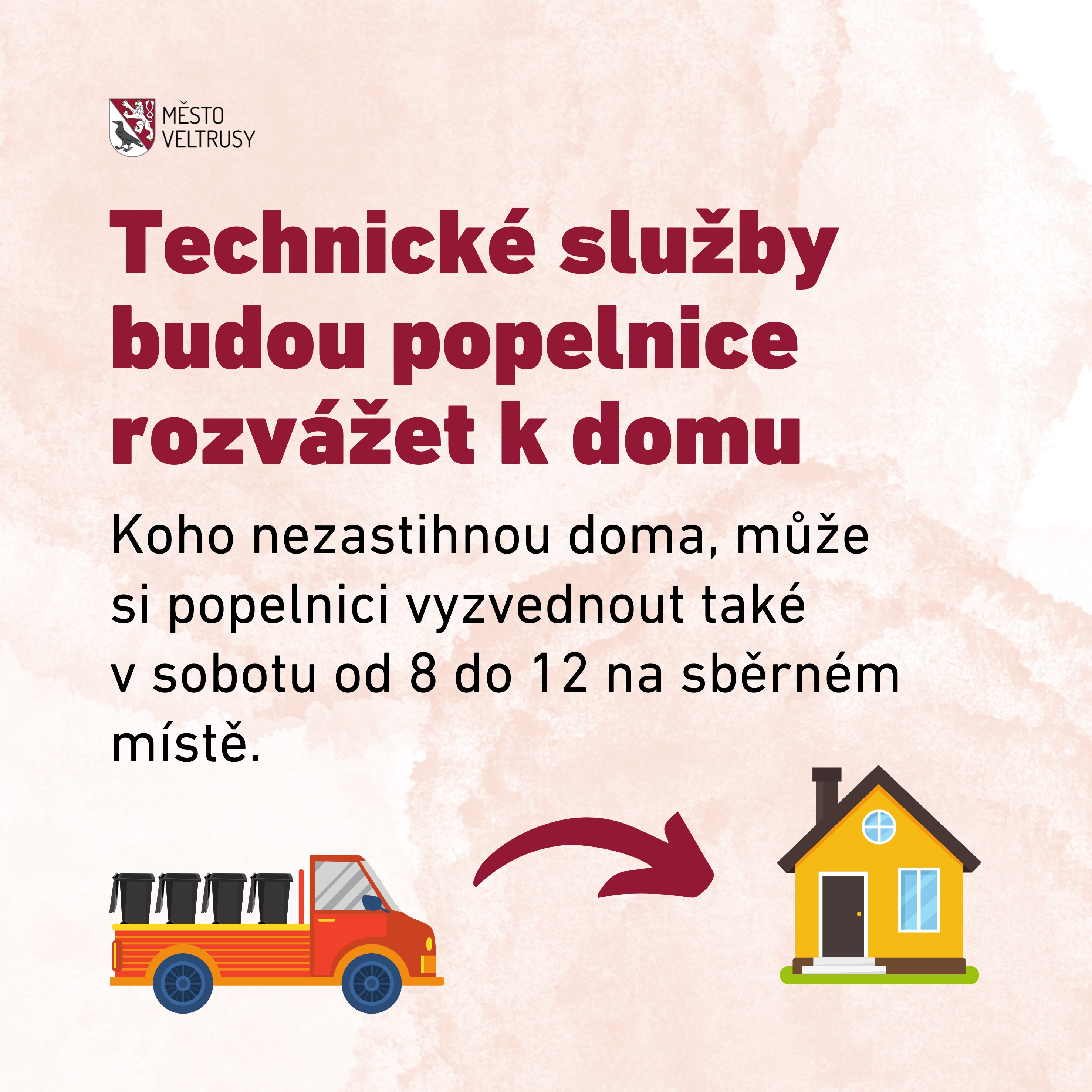 Ve čtvrtek 20. 2. 2025 budou do města doručeny popelnice na směsný odpad, které si občané objednali přes město. Technické služby budou popelnice rozvážet k domu.