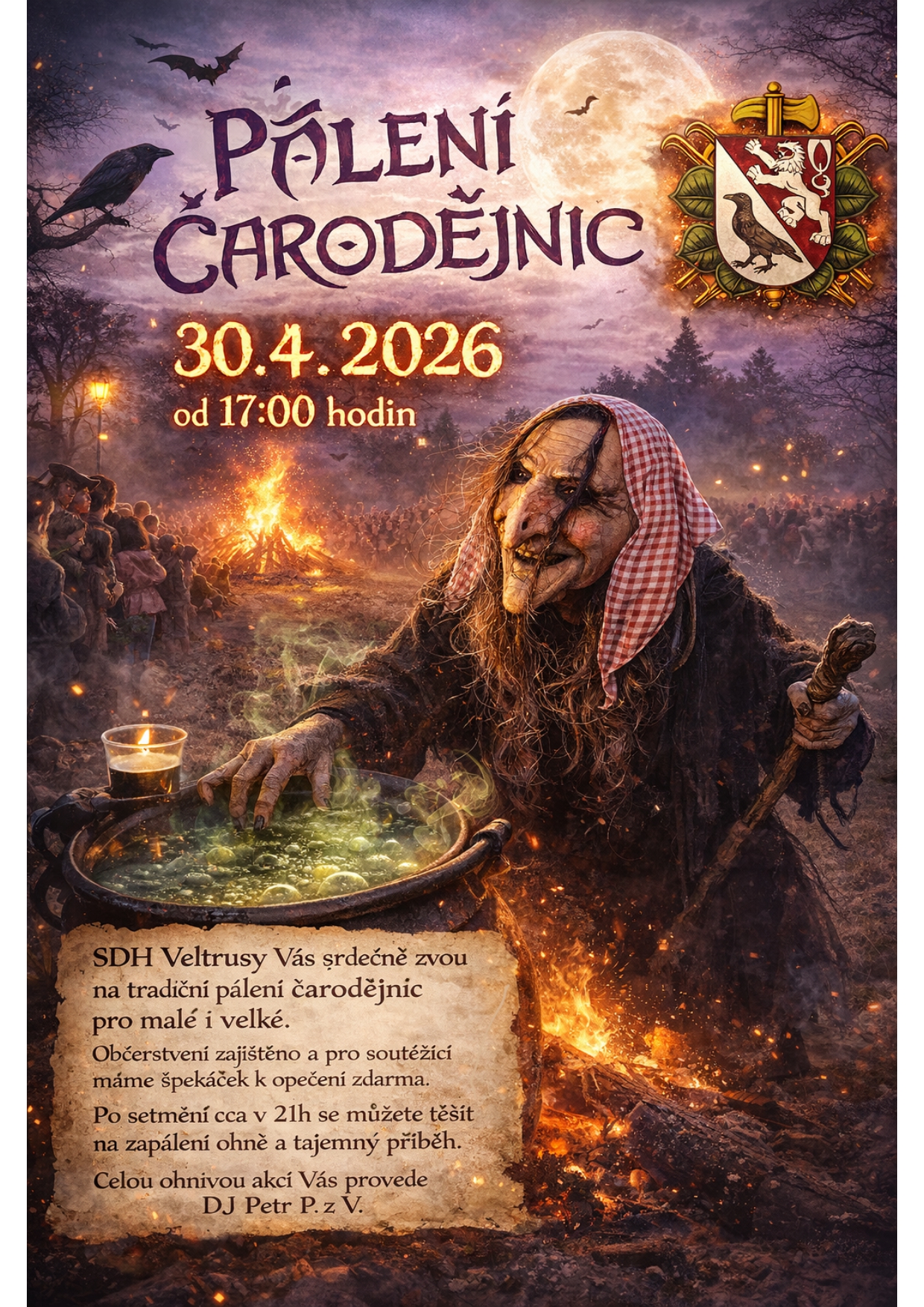 Sbor dobrovolných hasičů Veltrusy srdečně zve všechny občany na oblíbené pálení čarodějnic, které každoročně přináší jedinečnou atmosféru, setkání sousedů i zábavu pro celé rodiny.