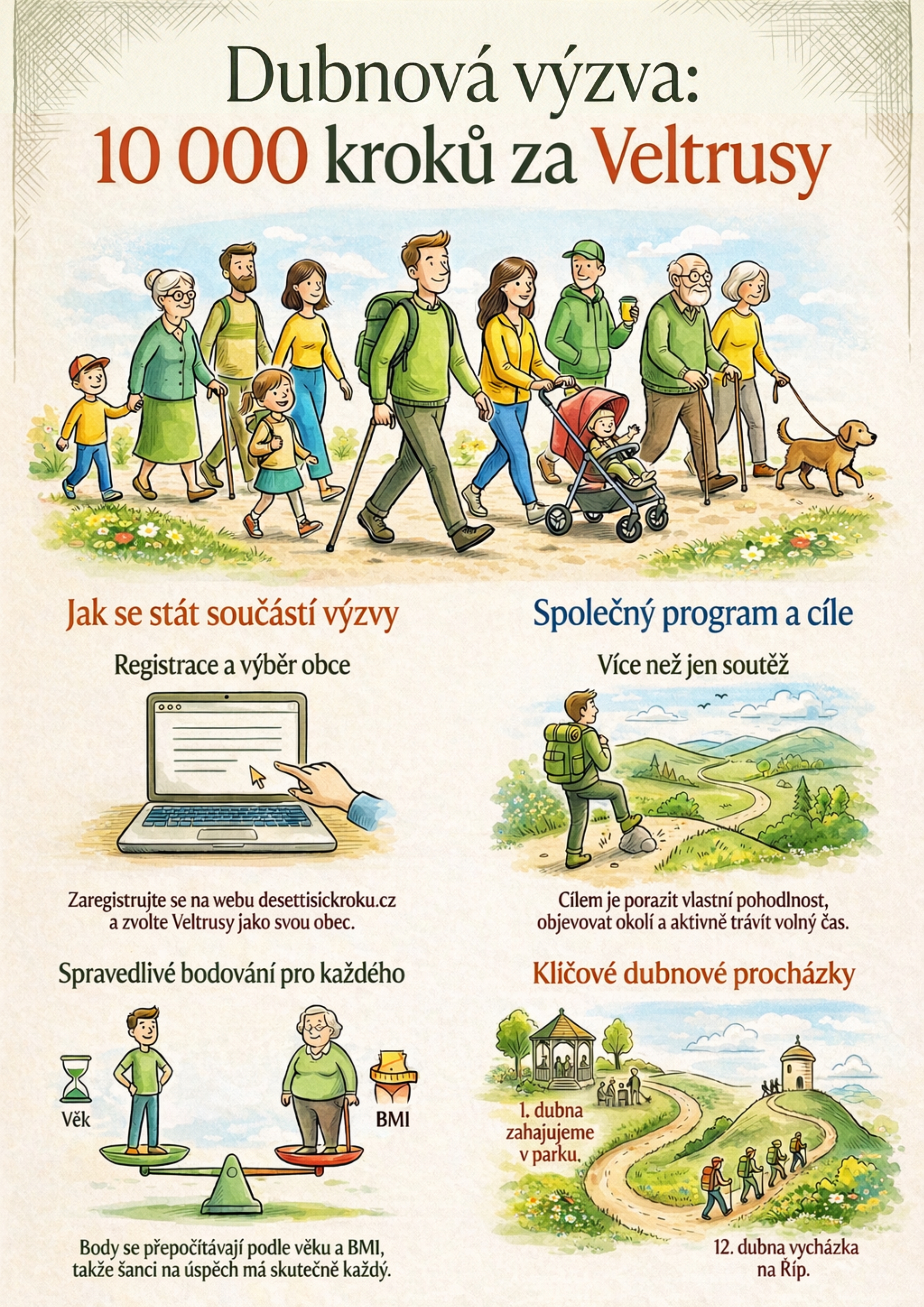 Stačí se zaregistrovat na www.desettisickroku.cz nebo v aplikaci „10 000 kroků“ a při přihlášení uvést Veltrusy jako svou obec.