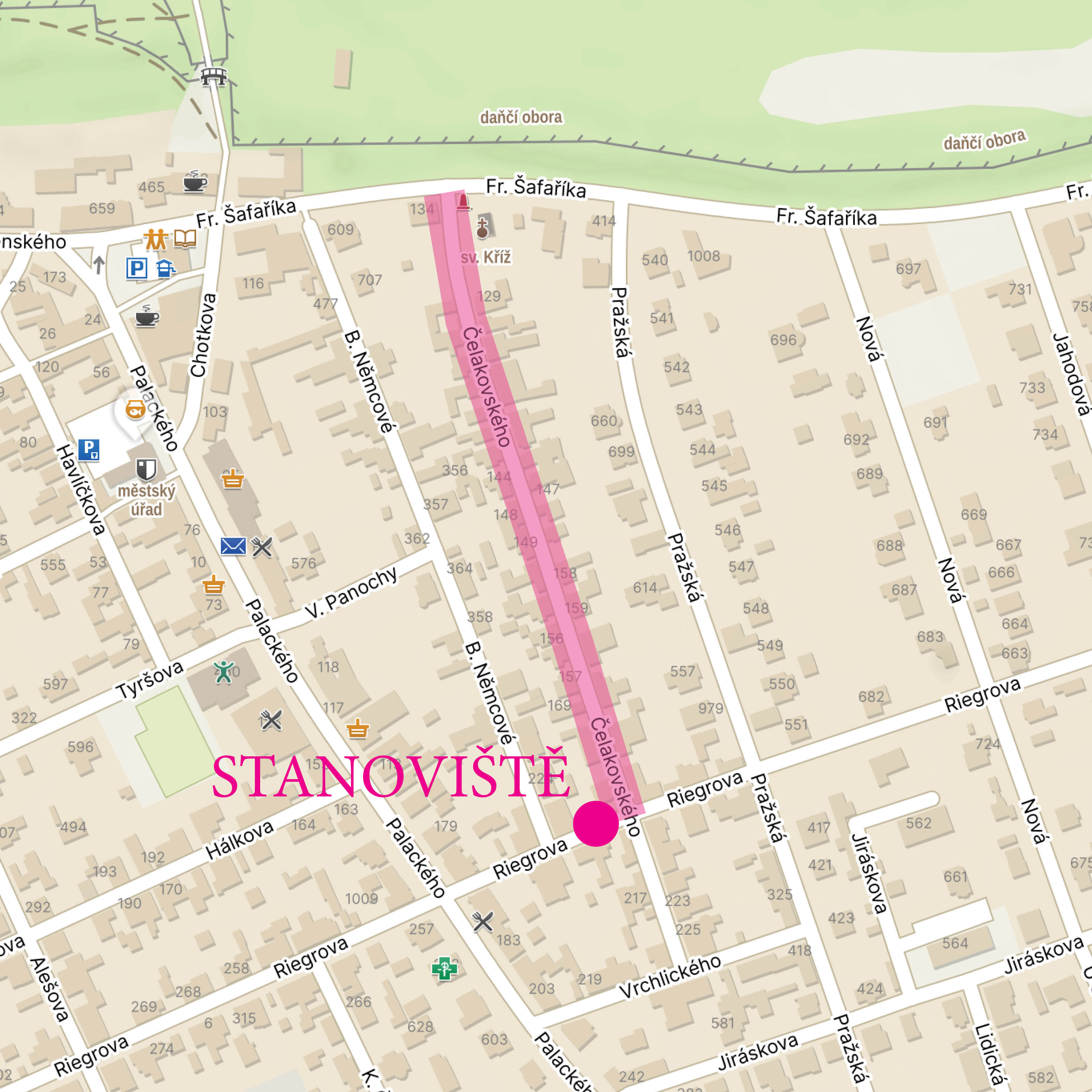 S ohledem na avízovanou úplnou uzavírku ul. Fr. Šafaříka je potřeba pro čtvrteční svoz směsného odpadu přemístit všechny popelnice z ulice Čelakovského z úseku mezi ul. Riegrova a Fr. Šafaříka ke křižovatce s ulicí Riegrova viz přiložená mapka a foto.