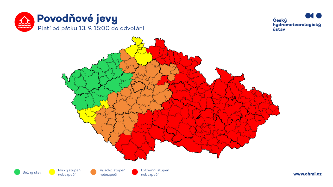 V důsledku vydatných srážek očekáváme od pátečního večera výrazné vzestupy hladin vodních toků. Nejvyšší vzestupy s četným překročením 3. SPA předpokládáme až během soboty a neděle. V povodích, kde budou 24hodinové úhrny přesahovat hodnoty nad 120 mm, předpokládáme i možnost výrazného překročení limitů pro 3. SPA. Odtokově nejvýznamnější situaci očekáváme na tocích, které odvodňují Jeseníky a další severovýchodní horské oblasti. Situaci budeme průběžně upřesňovat.